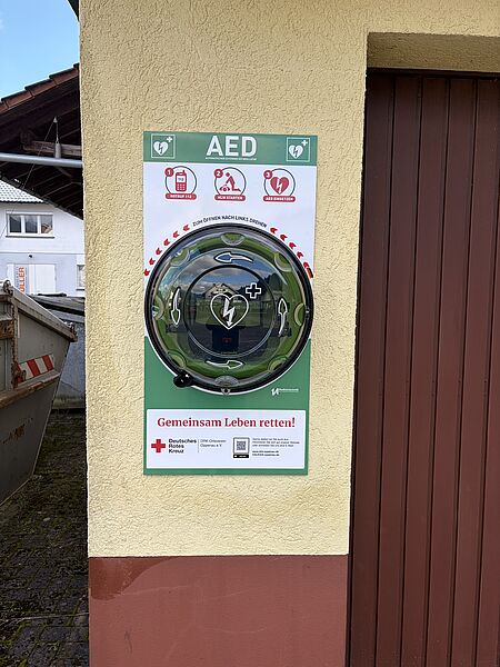 Mithilfe der Rotaid 24/7 Cabinet werden unsere AED Geräte für jeden im öffentlichen Raum ersichtlich gekennzeichnet.